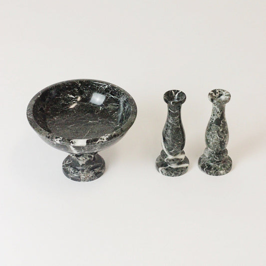 MARBLE PEDESTAL BOWL W/ MATCHING CANDLE-HOLDER SET II