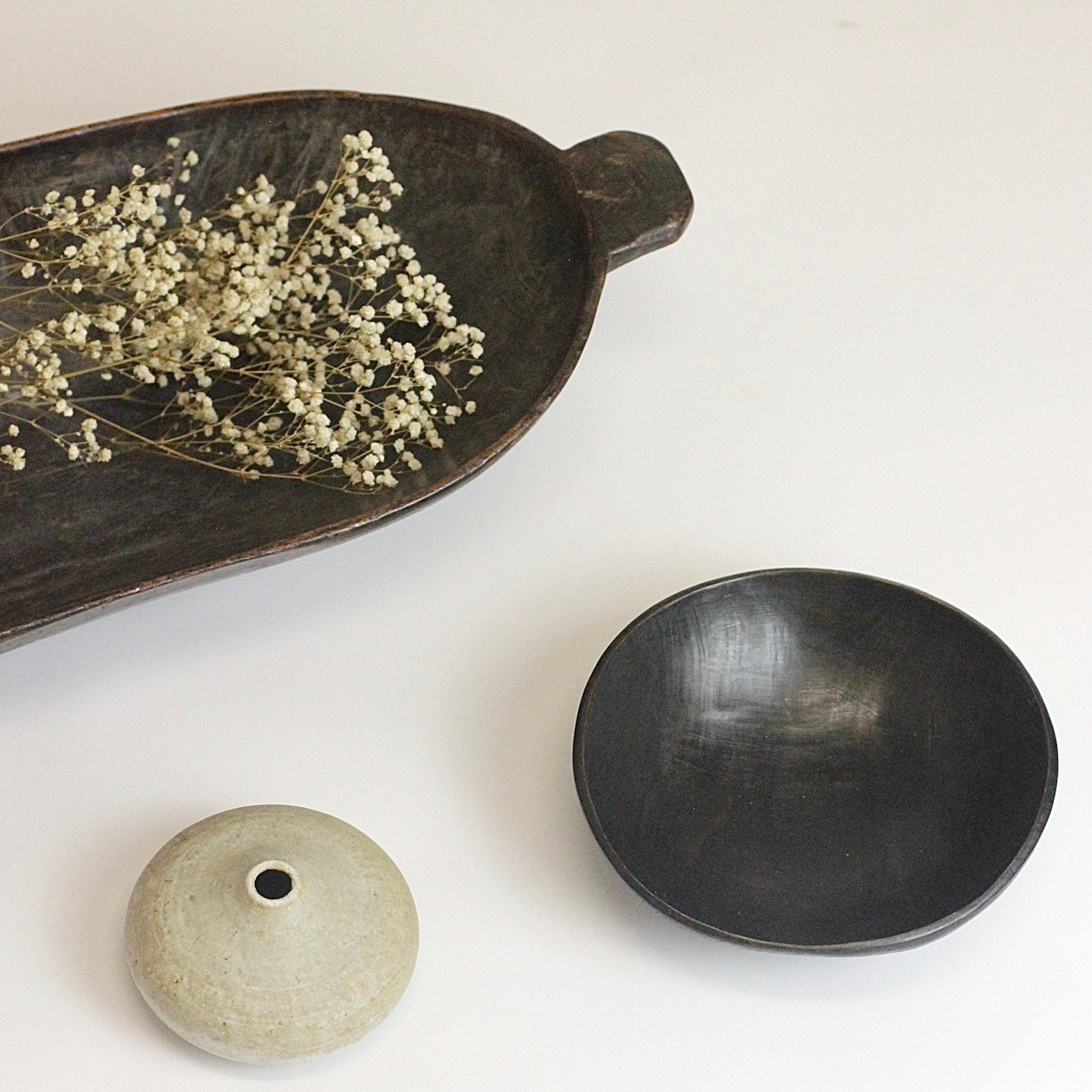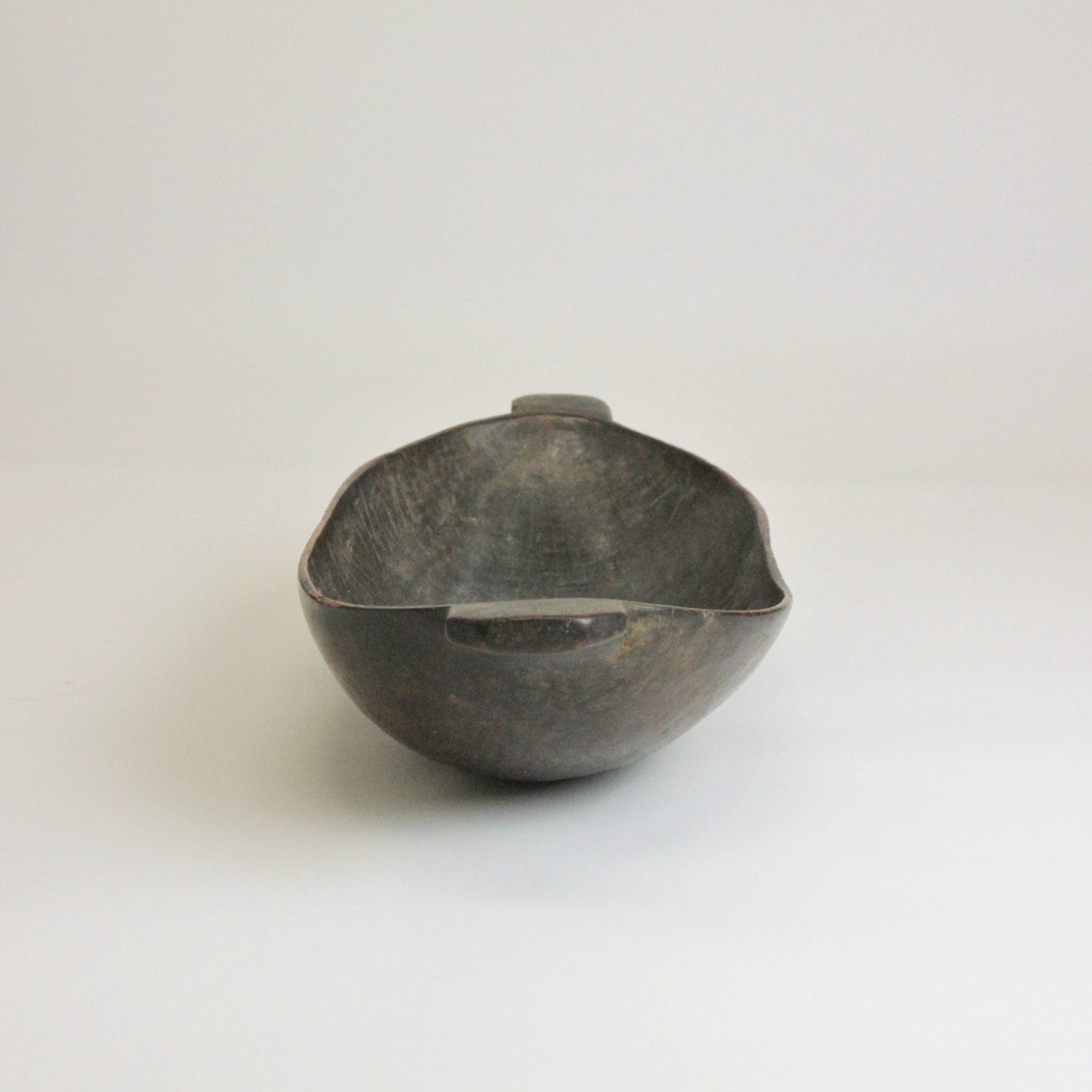 Large and heavy antique African wooden bowl with handles, hand-carved from a single piece of wood ( over 220 years old).